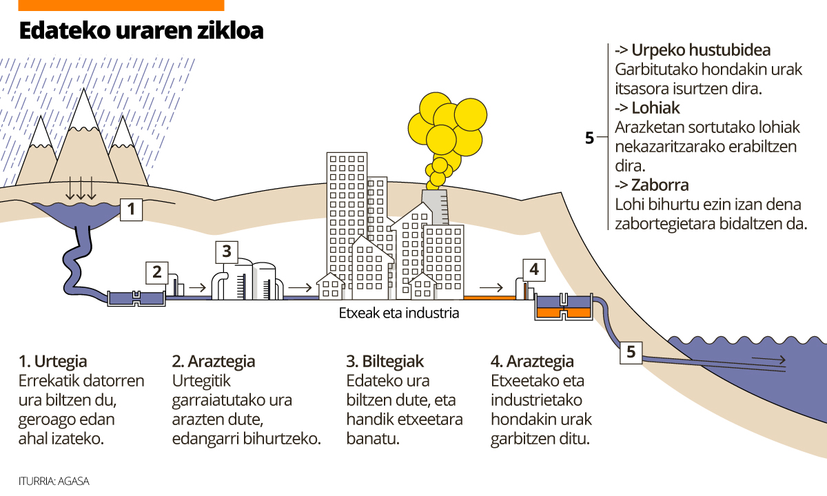Urak bere zikloa du, eta zer esanik ez Loiolako araztegiak. Hiri txiki bat da: urteko egun guztietan egoten da martxan, 24 orduz. Ura bertan sartzen denetik ateratzen den arte —batez beste, segundoko 1.100 litro—, hondakin urak denetariko eraikin eta pasabideetatik igarotzen dira. Bidearen bukaeran, lau irteera daude: ur garbia itsasora joaten da, hondarra eraikuntza sektorearengana, lohi bihurtu ahal izan dena Nafarroako landa eremura, eta lohi bihurtu ahal ezin izan dena, zabortegira. Bosgarren irteera bat ere badago: lohia sortzeko faseetan ateratako ura hasierara itzultzen da.